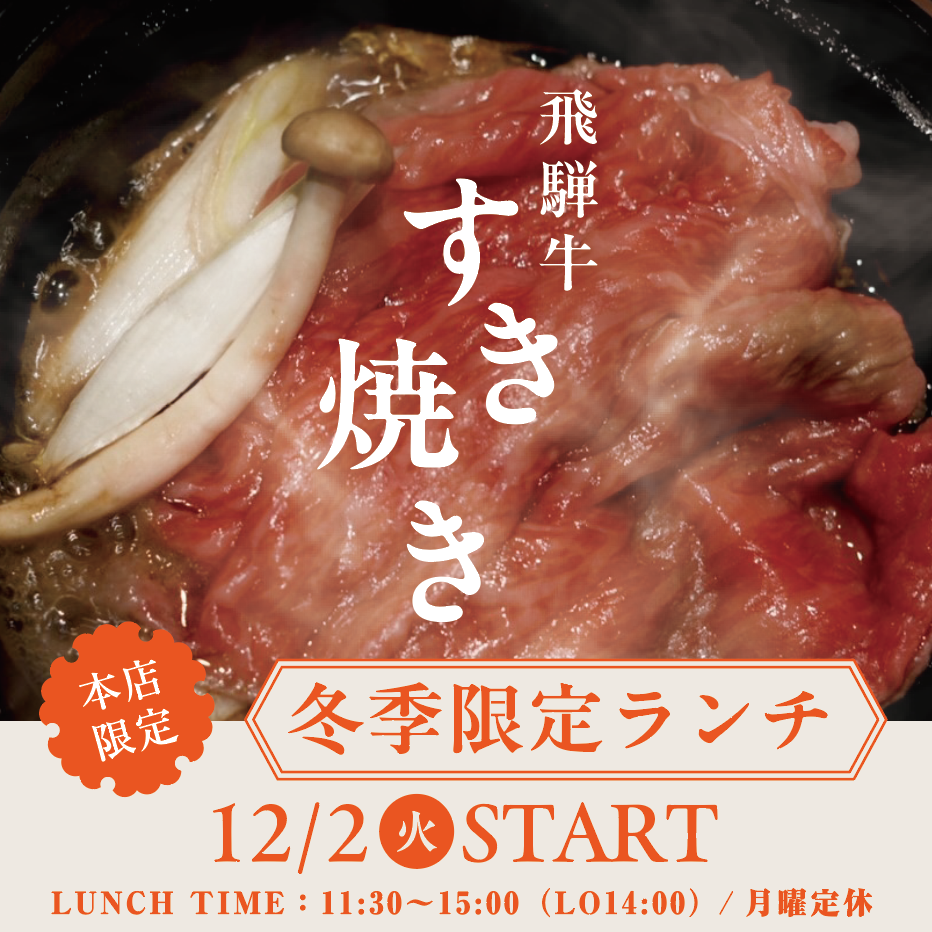 冬季限定「飛騨牛すき焼きランチ」12/2 START!